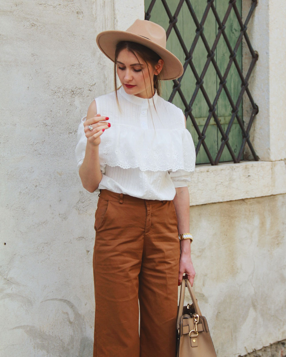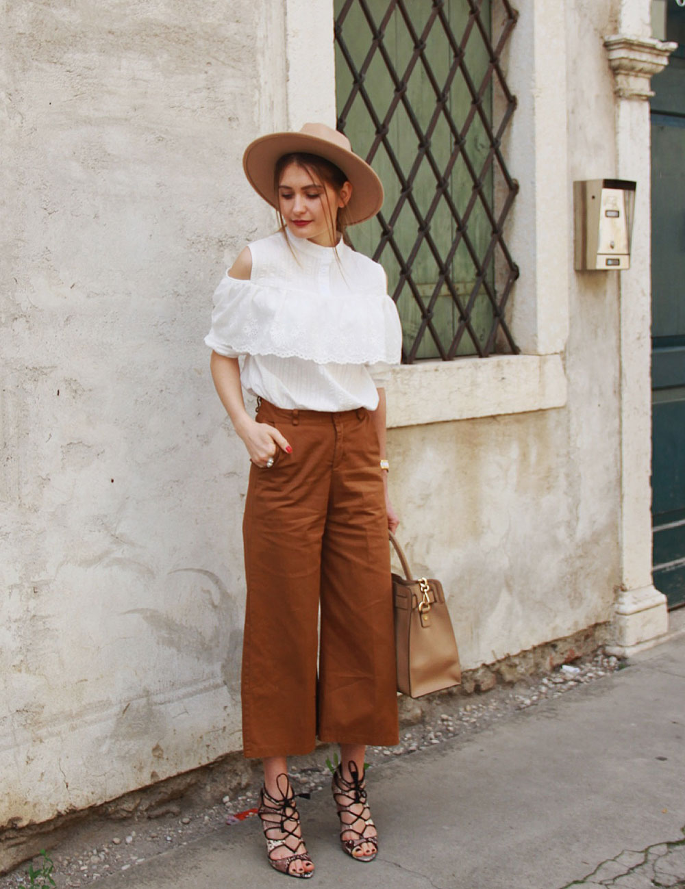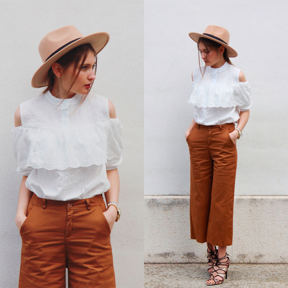 Buna fetelor! Abia asteptam sa va arat aceasta tinuta, din pacate la noi timpul nu e prea frumos,ploua si e frig ๐Ÿ™ Prefer sa mai astept cateva zile si sa fac poze cu tinute foarte lejere,decat sa le fac in graba si sa tremur de frig doar pentru a pune o tinuta noua pe blog,nuuu eu nu-s asa. ย Ieri pana la amiaza a fost frumos,asa ca am profitat sa fac cateva poze. Saptamana trecuta am primit aceasta bluza,vai cat imi place,detaliile ei fac diferenta ๐Ÿ™‚ De data aceasta am ales o pereche de pantaloni culottes,dar sigur o puteti asorta si cu o fustita sau sort,cald sa fie ca idei sunt multe :))) ย Bluzita o gasiti aici,pantalonii aici,palarie aiciย ! Pentru orice curiozitate ma gasiti pe FB sau Instagramย โ™ฅ