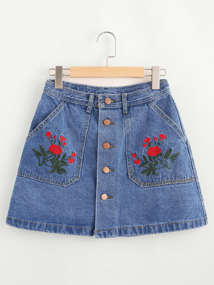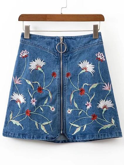 Embroidery Denim Skirt
