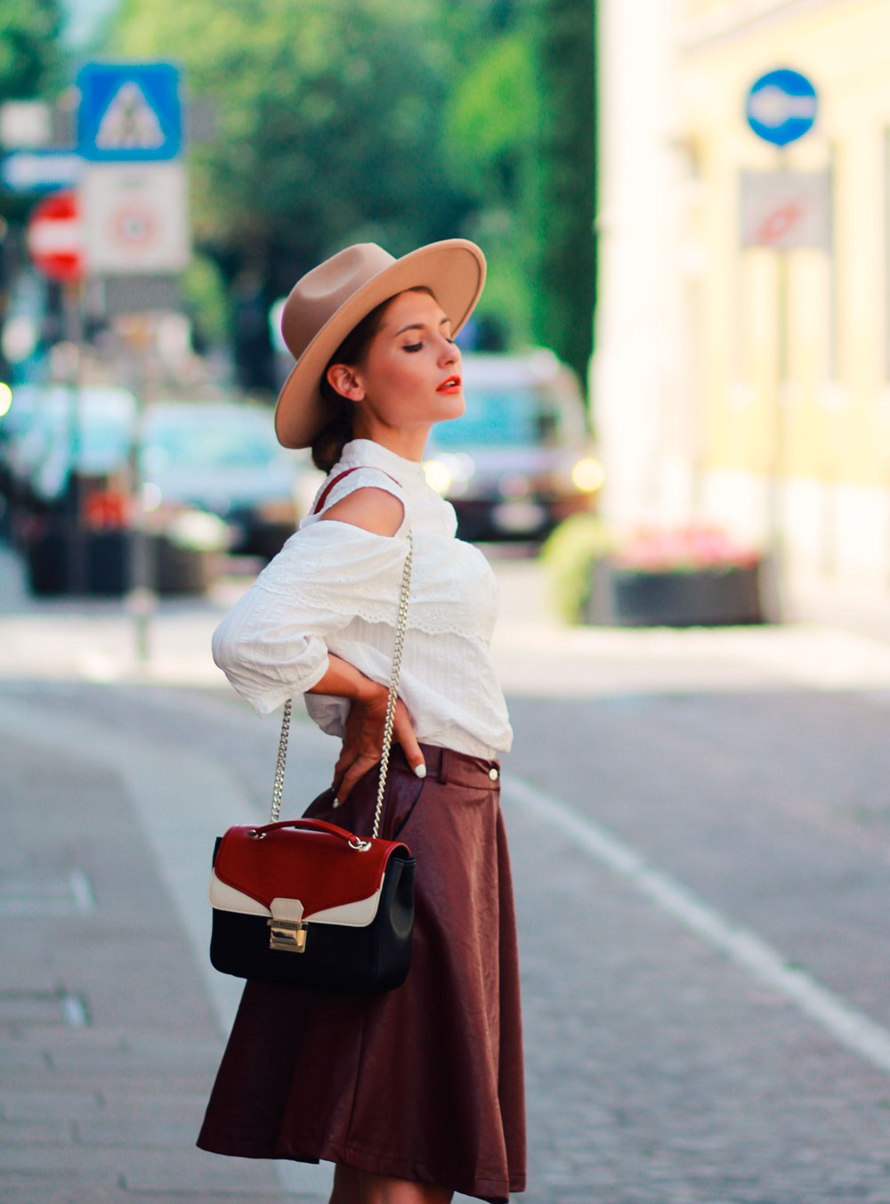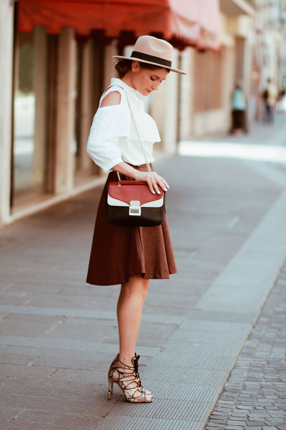 Azi vreau sa va prezint o tinuta comoda si trendy,perfecta si pentru zilele la birou as spune. Voi ce parere aveti? Eu,de exemplu,as pleaca asa la munca π Despre ce mai exact vroiam sa va vorbesc,e aceasta minunatie de fusta din piele.Daca adesea va intrebati cum ati putea sa purtati articole din piele pe timp de vara,cum le-ati putea combina,cu ce si cum…va spun eu π Mi-a placut foarte mult aceasta fusta,iar atunci cand am vazut-o pe Sammydress.com nu am ezitat nici o clipa sa o adaug in cosulet π Stiam ca va fi un investiment bun,chiar daca nu costa o avere (acum o gasiti la reducere la doar 10 e),stiam ca o voi purta foarte des,fie ca e vara,iarna,toamna. Pentru a crea un look fresh,am ales sa port o bluza alba,o palarie si o pereche de sandale. Sigur,daca va doriti o tinuta de zi,pentru o iesire in oras cu prietenele,sau pur si simplu la o plimbare,puteti alege un maiou,o pereche de sandale josute sau adidasi,asa cum am facut si eu zilele acestea π ( Vedeti ultima imagine ) Sunt sigura ca o voi purta si toamna cu un pulover sau o camasa,un paltonas si o pereche de botine,deci sunt foarte multe idei,important e sa stim in ce articole face sa investim cu adevarat.