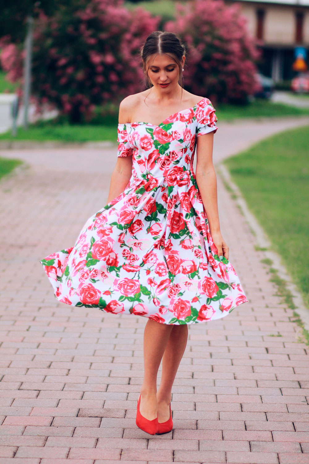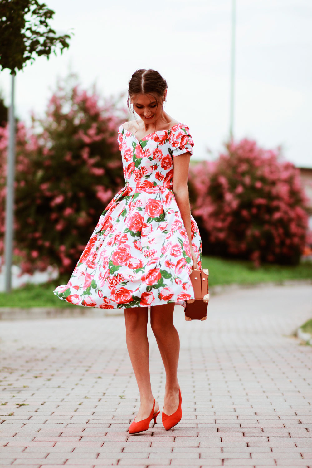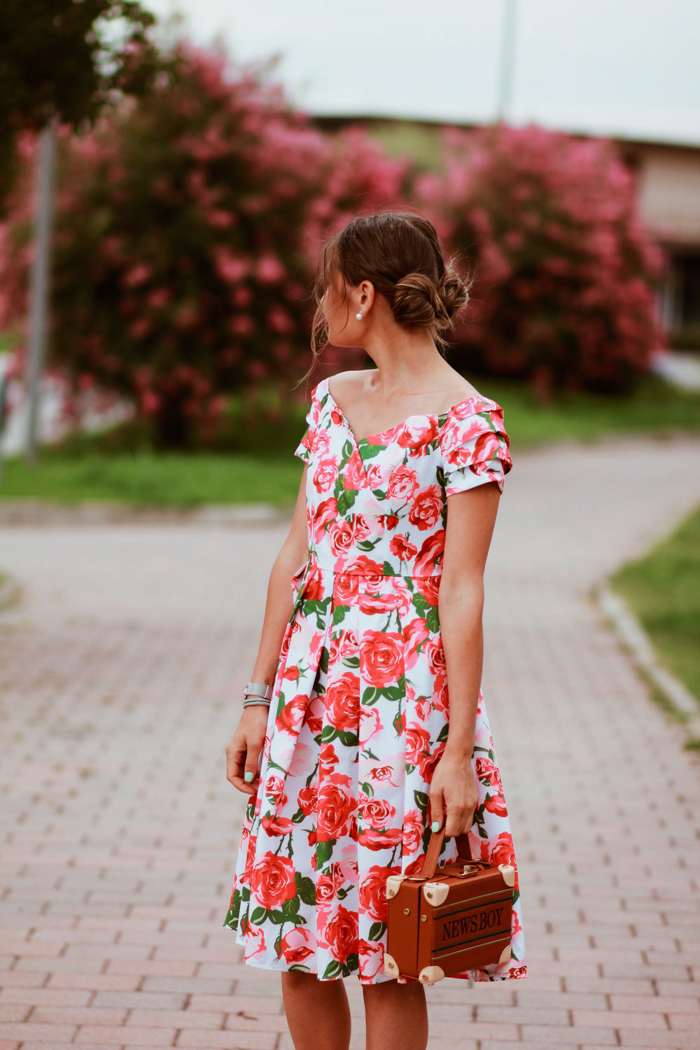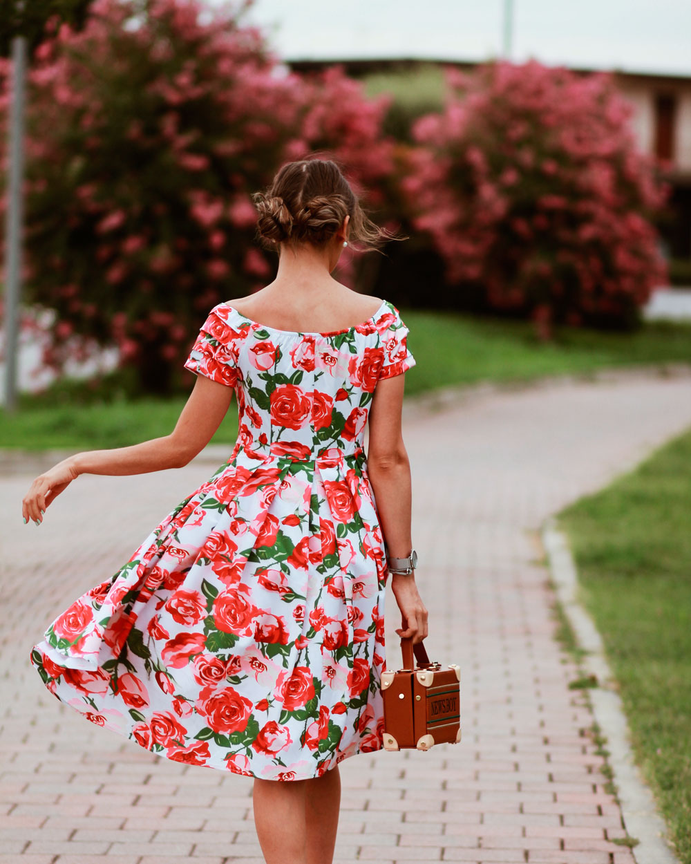 Fiind o rochie vintage,am ales sa port tocuri joase,insa puteti sa alegeti si o pereche de sandale cu un toc mai mare,sunt sigura ca nu va arata rau. Am completat tinuta cu o gentuta,care ati mai vazut-o adesea in pozele mele. Parul l-am prins singurica.Ieri m-ati tot intrebat pe Instagram Stories,cum si unde mi-am facut parul asa? L-am facut singura,foarte usor si rapid.Mai intai de toate,mi-am buclat putin parul,adica am facut cateva bucle lejere ca parul meu sa arate mai voluminos.La spate am prins doua codite.Am rasucit bine de jur imprejur codita si am prins-o cu cateva clame. Nimic special si deloc complicat. Consider ca acest look s-a potrivit foarte bine cu tinuta mea.Voi ce parere aveti?